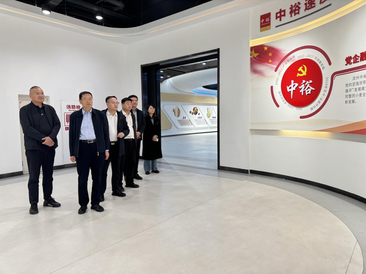 在中裕三产融合发展示范园,考察团一行通过实地查看、听取介绍等方式,详细了解了项目规划建设、产品研发及“三产融合、绿色循环”产业链条以及节能降碳方面取得的成效等情况;参观了黄河三角洲小麦产业馆、物流配送中心、央厨生产车间、养鸡场、生猪加工车间、麦便利实体店等;了解中裕食品如何从田间到餐桌,打造贯穿一二三产业的小麦加工全产业链。滨州中裕食品有限公司副总经理尹广利重点介绍了一二三产业融合发展的“中裕模式”,以小麦种植养殖为基础,坚持产业“抓深、抓细”,对小麦、生猪,鸡等进行深度开发、综合利用,最大限度提升资源利用率,提升产品丰富度和优质化。